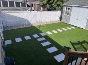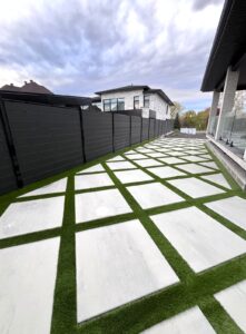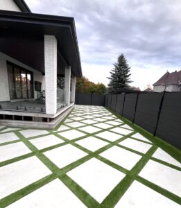 Laissez-vous séduire par l’originalité des insertions de gazon synthétique entre des dalles ou des zones de pavés, une solution tendance pour un rendu original qui fera toute la différence.