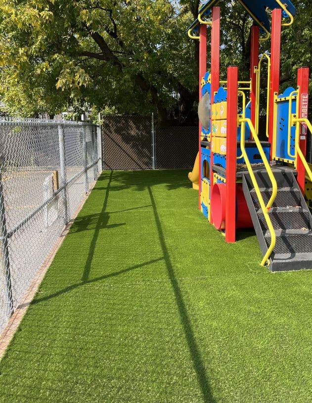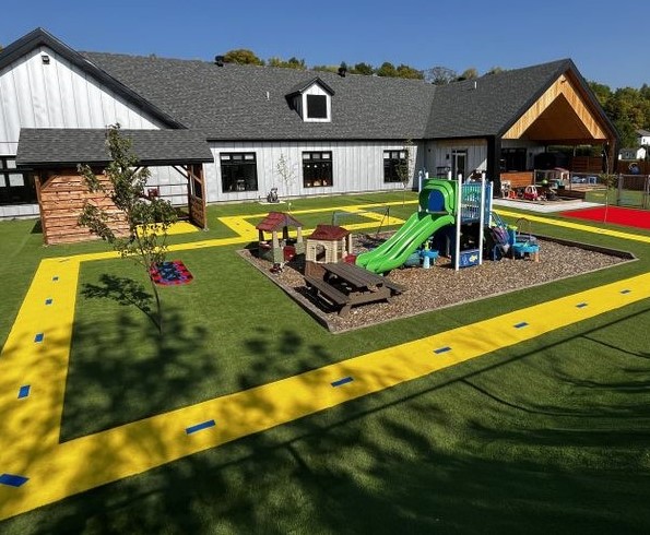 Nos projets démontrent comment notre synthétique pour aires de jeux transforme les cours de garderies, CPE et écoles en espaces sécuritaires, propres et accueillants.